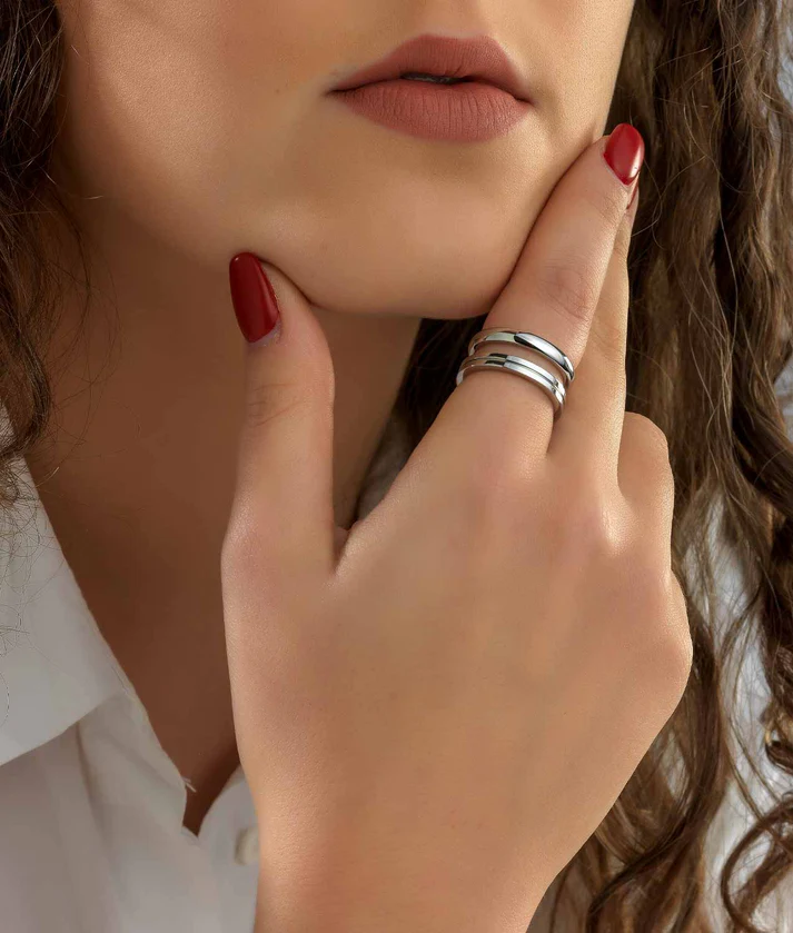 Em primeiro lugar, este anel duplo possui design modular, permitindo que as peças se encaixem perfeitamente entre si. Além disso, sua construção em aço cirúrgico inoxidável garante resistência, durabilidade e conforto. O acabamento prateado polido confere brilho e sofisticação, tornando o anel ideal para uso diário ou ocasiões especiais.
