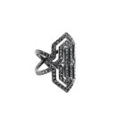 O anel é fabricado em aço inoxidável de alta qualidade e exibe um design deco refinado adornado com cristais Swarovski, que captam a luz a cada movimento. Como resultado, cada gesto revela um brilho elegante, refletindo o cuidado e a precisão da marca KARL LAGERFELD.