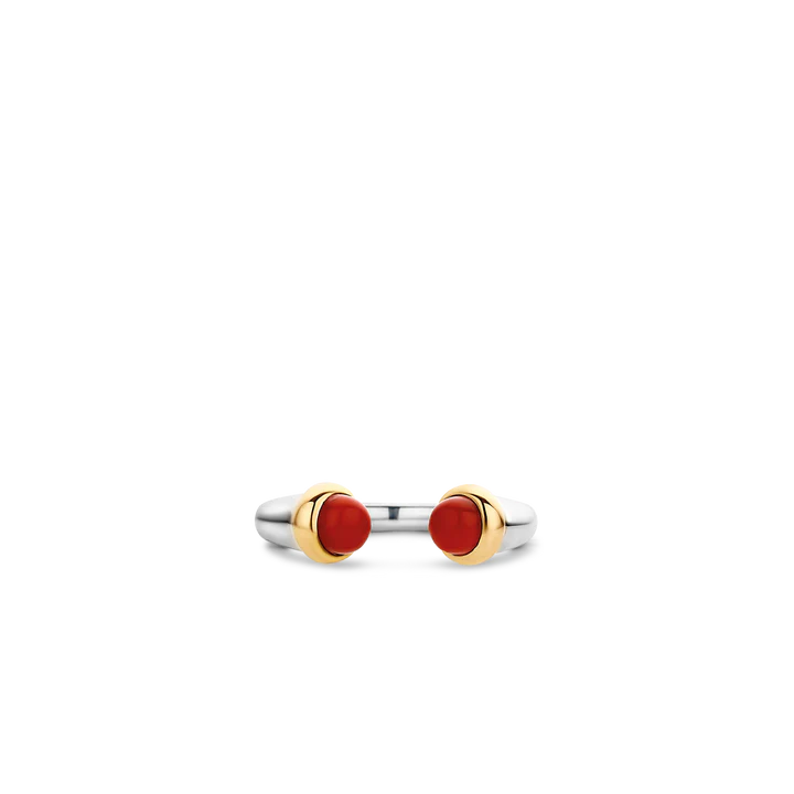 Este modelo adapta-se facilmente a qualquer ocasião. Além disso, o tom marcante das pedras permite criar combinações modernas e cheias de personalidade. Pode usá-lo sozinho para um visual minimalista ou, se preferir, empilhá-lo com outros anéis da coleção TI SENTO para um efeito mais ousado. Por isso, é a peça ideal para quem gosta de joias versáteis.