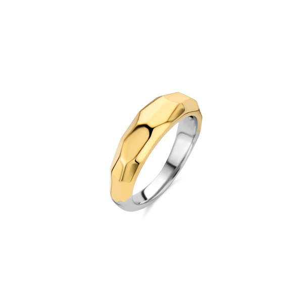 O Anel TI SENTO 12201SY é confeccionado em prata banhada, proporcionando durabilidade, resistência e conforto durante o uso diário. Ademais, o banho em ouro amarelo adiciona um toque luxuoso, criando contraste elegante com o brilho da prata e valorizando o design facetado.