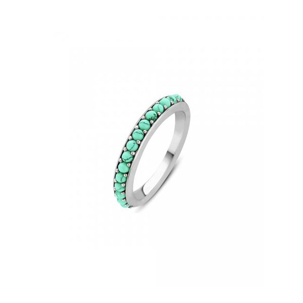 Este anel TI SENTO é feito em prata esterlina banhada a ródio e uma fileira de cristais lapidados brilhantes engastados à mão. O design elegante e a cor turquesa dão um toque extra ao anel. A coleção TI SENTO inclui uma infinidade de anéis que oferecem infinitas combinações possíveis seguindo o conceito Mix & Match. O anel também pode ser combinado com brincos e colar combinando para um visual arrojado.