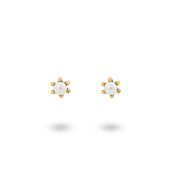 A designer Kae Sutherland criou esta peça com paixão e atenção aos mínimos detalhes. Ela utilizou prata 925 com banho de ouro para garantir qualidade e durabilidade. Além disso, o destaque vai para a pequena pérola central, posicionada em uma elegante configuração de seis garras (ou chaton), que adiciona um brilho discreto ao rosto.