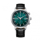 A sua caixa em aço inoxidável prateado, com 42 mm de diâmetro, oferece robustez e presença no pulso. Além disso, o mostrador verde dá um toque distintivo e contemporâneo ao design, criando um contraste elegante com a bracelete em couro preto, que garante conforto e estilo em qualquer ocasião.
