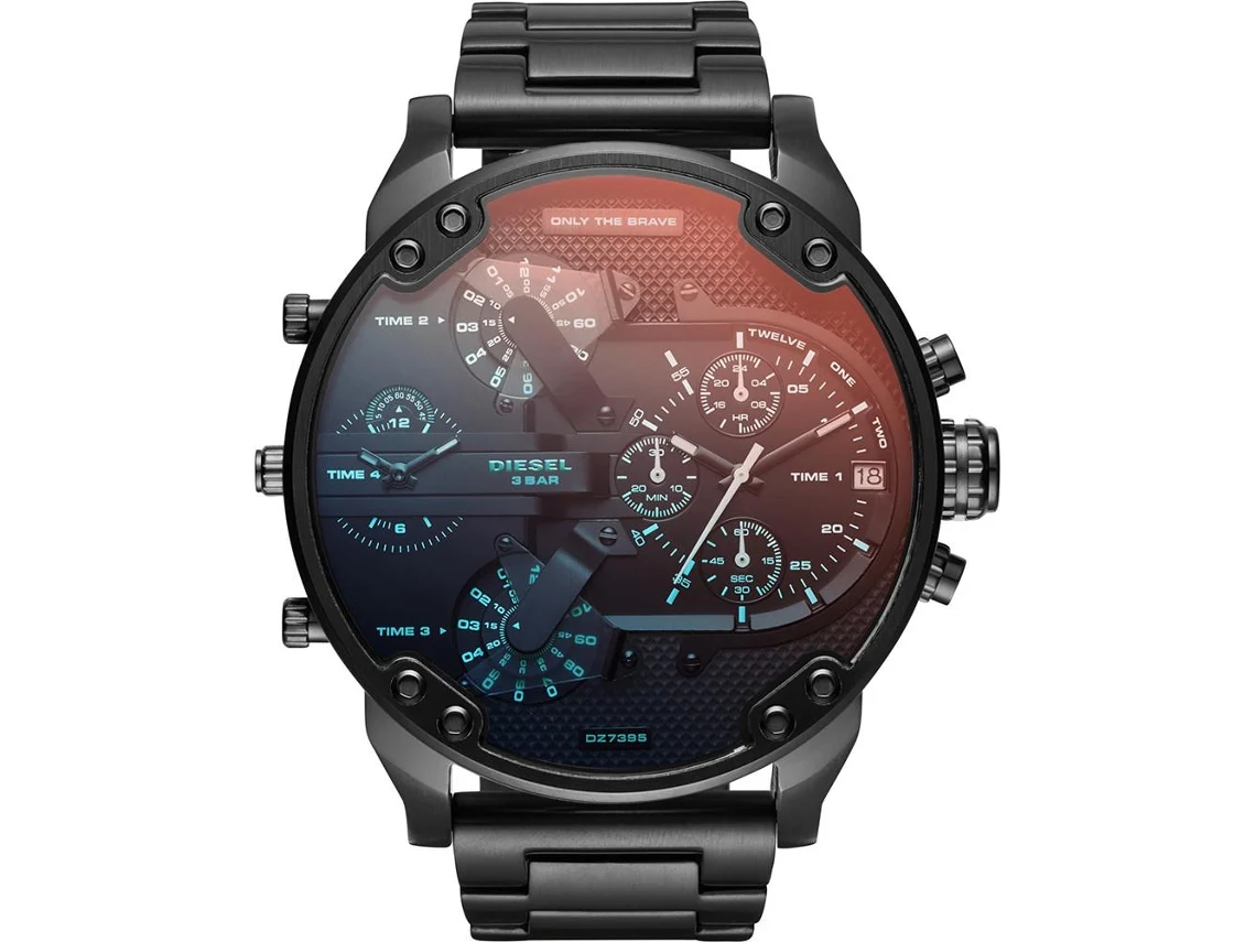Este Diesel DZ7395 com cristal iridescente nebulosa e caixa de aço na cor preta é perfeito para quem busca um relógio grande para homem com um cristal diferente que reflete várias cores de acordo com a incidência da luz.