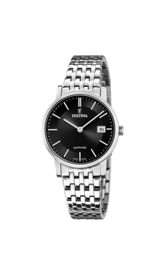 Este modelo reflete a excelência da marca Festina, amplamente reconhecida por seus designs refinados e inovadores. A caixa redonda de aço inoxidável, com um diâmetro de 29,3 mm e espessura de 6,4 mm, é discreta, mas ao mesmo tempo impressionante. Consequentemente, o relógio exibe um visual sofisticado que combina perfeitamente com qualquer look, seja para o trabalho, eventos ou ocasiões casuais.