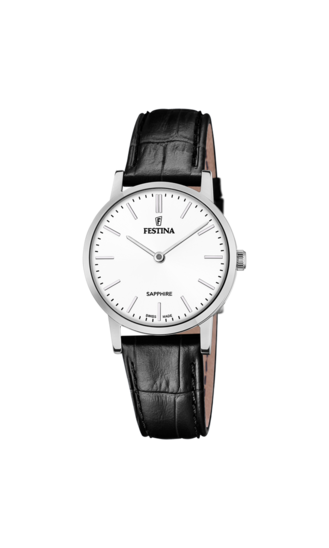 O Festina F20013/1 apresenta uma caixa redonda de 29,3 mm, fabricada em aço inoxidável branco, garantindo durabilidade e um acabamento impecável. Além disso, seu mostrador branco sofisticado, protegido pelo resistente vidro de safira, destaca-se pelo visual clean e minimalista, tornando-o ideal para diversas ocasiões.